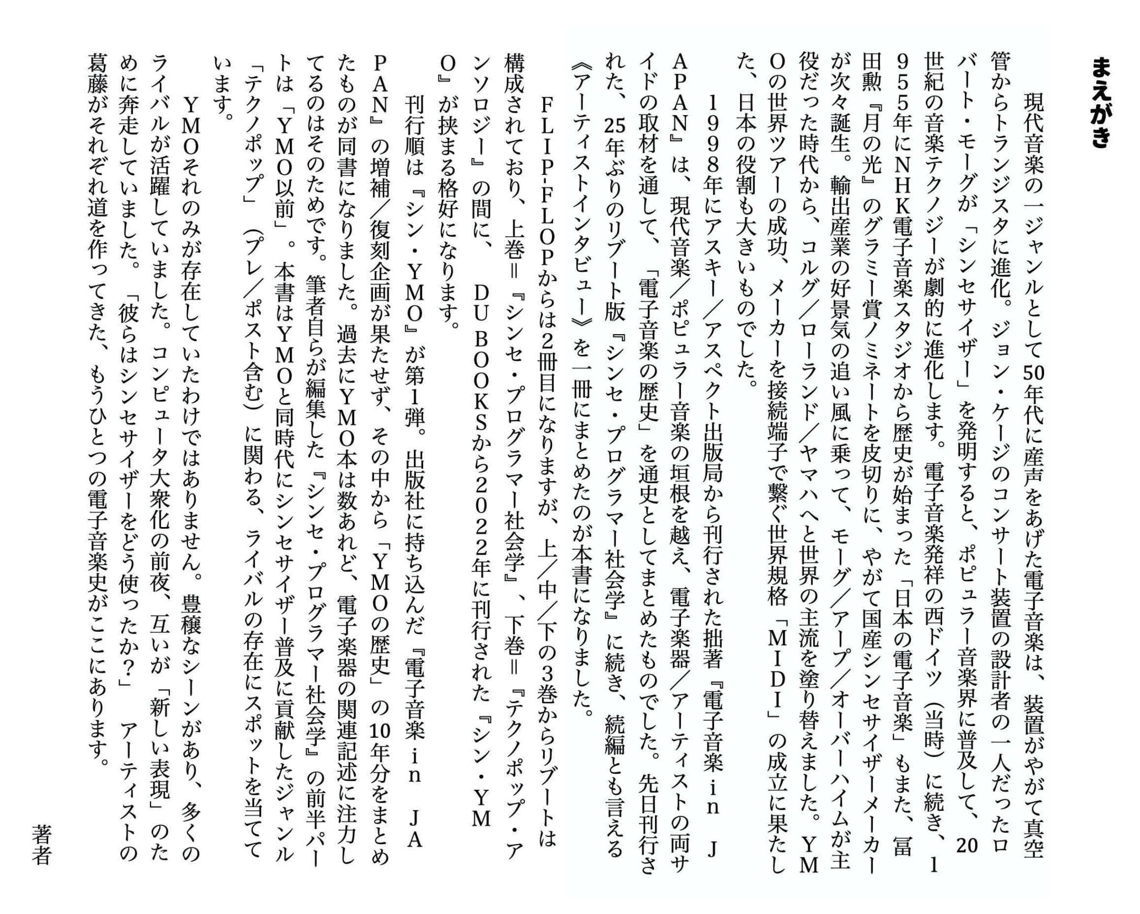 25年前に刊行された『電子音楽 in JAPAN』の、著者編集によるリブート版第2弾。元の書籍700ページのうち、アーティストインタビューを再構成。約半分は新規コンテンツを収めています。各章にはディスクガイドを掲載。
